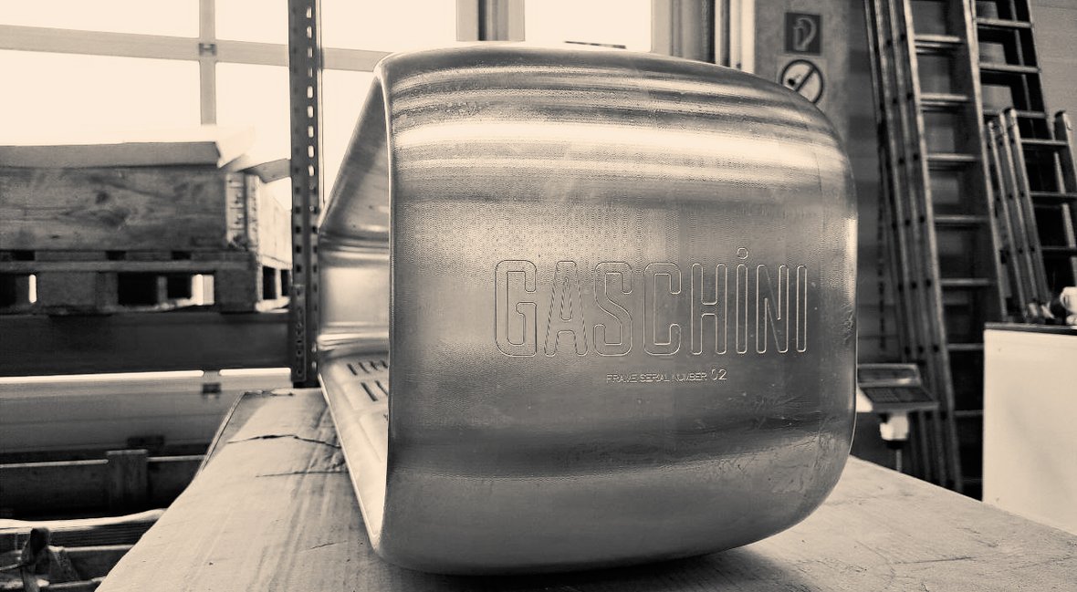 THE GASCHINI FRAME DIRECTLY AFTER 5-AXIS CNC MILLING. READY FOR MANUAL POLISHING.